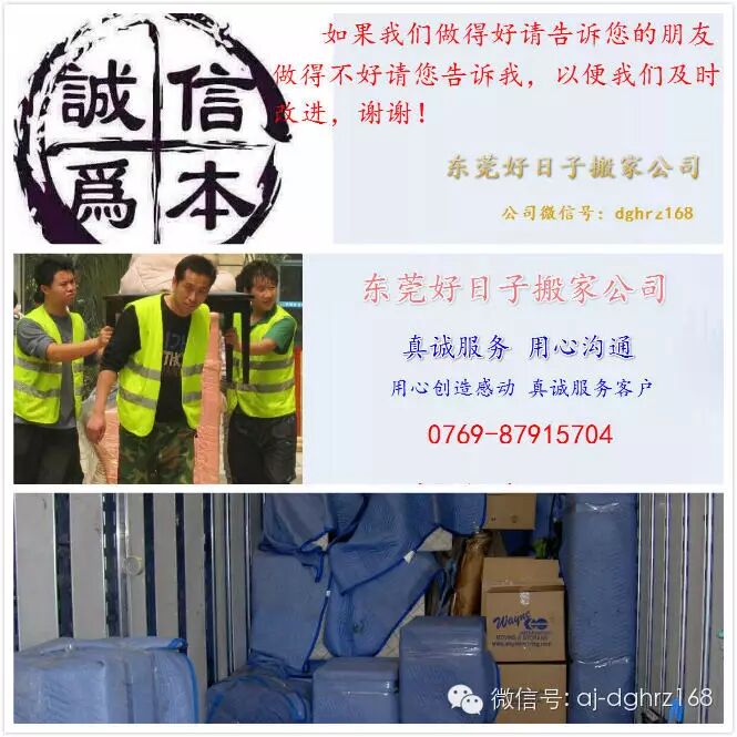 如何让众多的客户都能成为东莞好日子搬家公司的回头客呢,凭的就是优质的服务。不同于不正规的搬家公司,从来不认为任何一次搬家服务是一锤子买卖,我们尽可能把每一次搬家做到尽善尽美,然后搬家的客户感觉到满意。不光客户会记住我们,并且会把我们公司推荐给自己的朋友。之所以能持之以恒,以优质的服务取得市民的信任,最主要的是要让客户感觉物有所值,花了钱得到的搬家服务是高质量的.